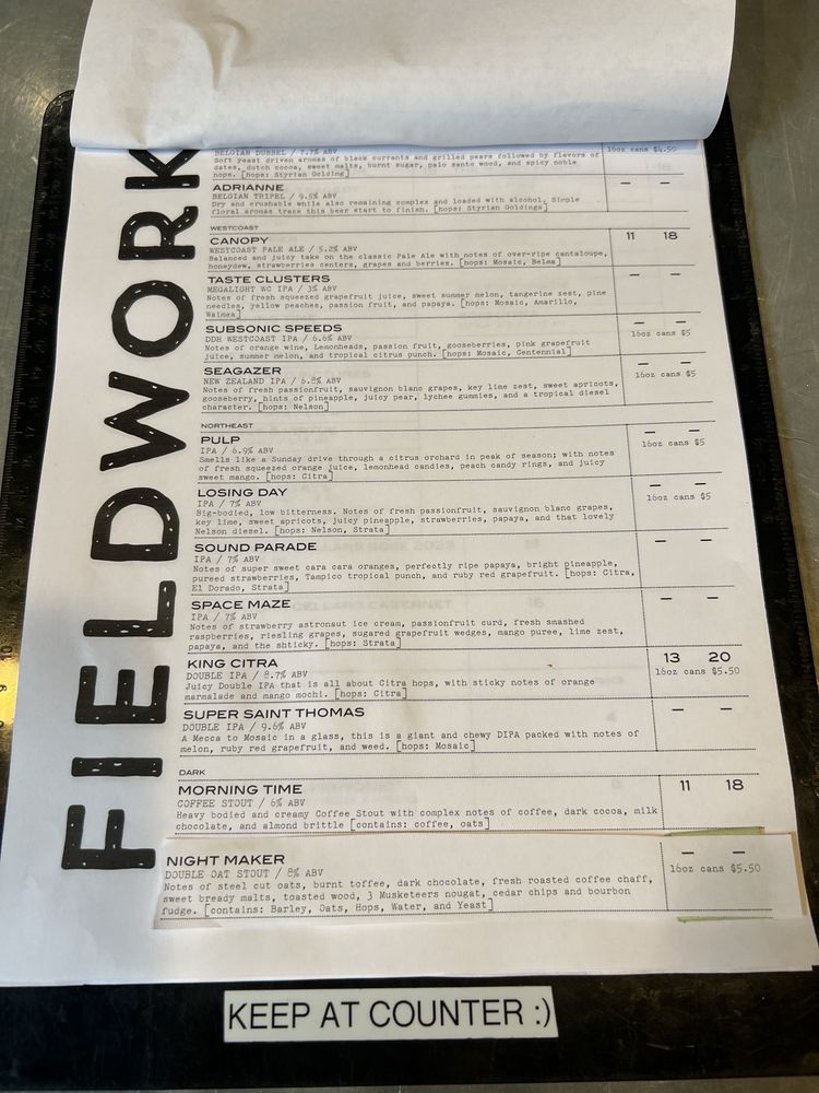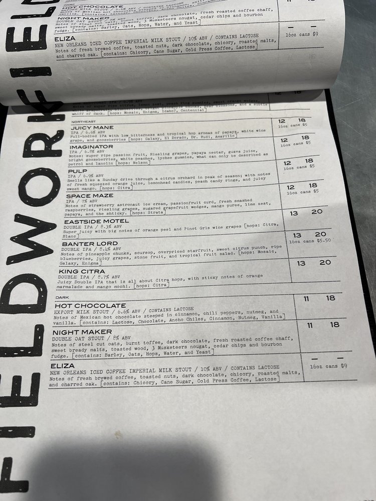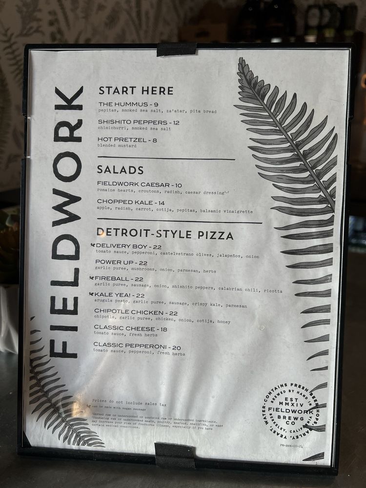 Introducing Fieldwork Brewing Company | Napa, a gem nestled in the heart of Napa, known for its diverse selection of craft beers and delectable Detroit-style pizza. With a welcoming atmosphere that encourages walk-ins and groups, it’s a community favorite for both casual drinkers and serious beer aficionados.